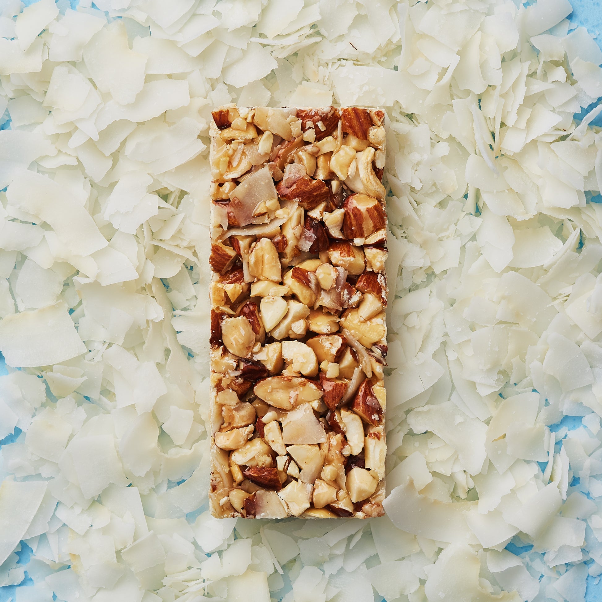 Fresh gourmet nuts including roasted cashews, crunchy almonds, mixed with the snowy flakes of the tasty coconut sliced that keep you delighted with every bite.