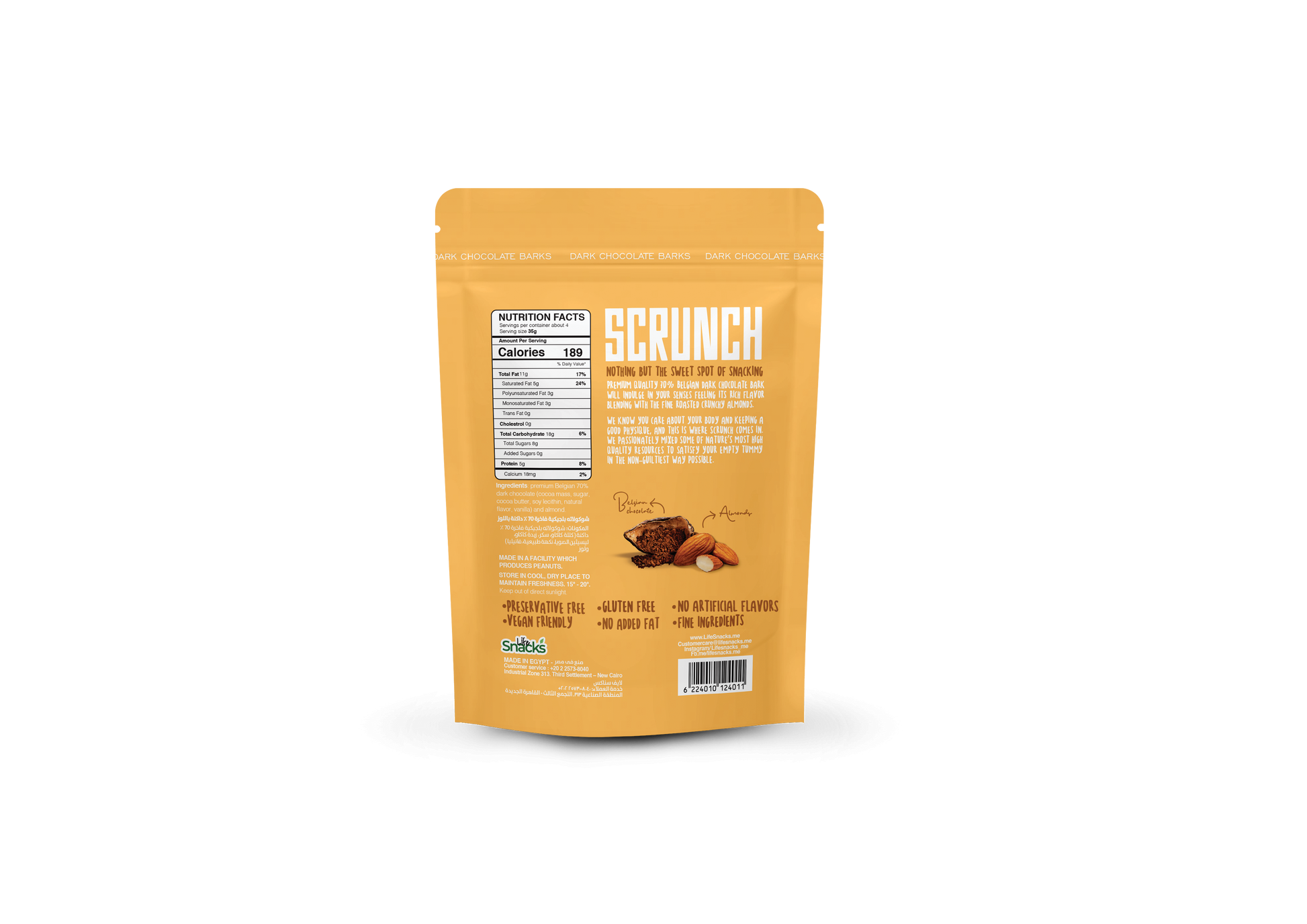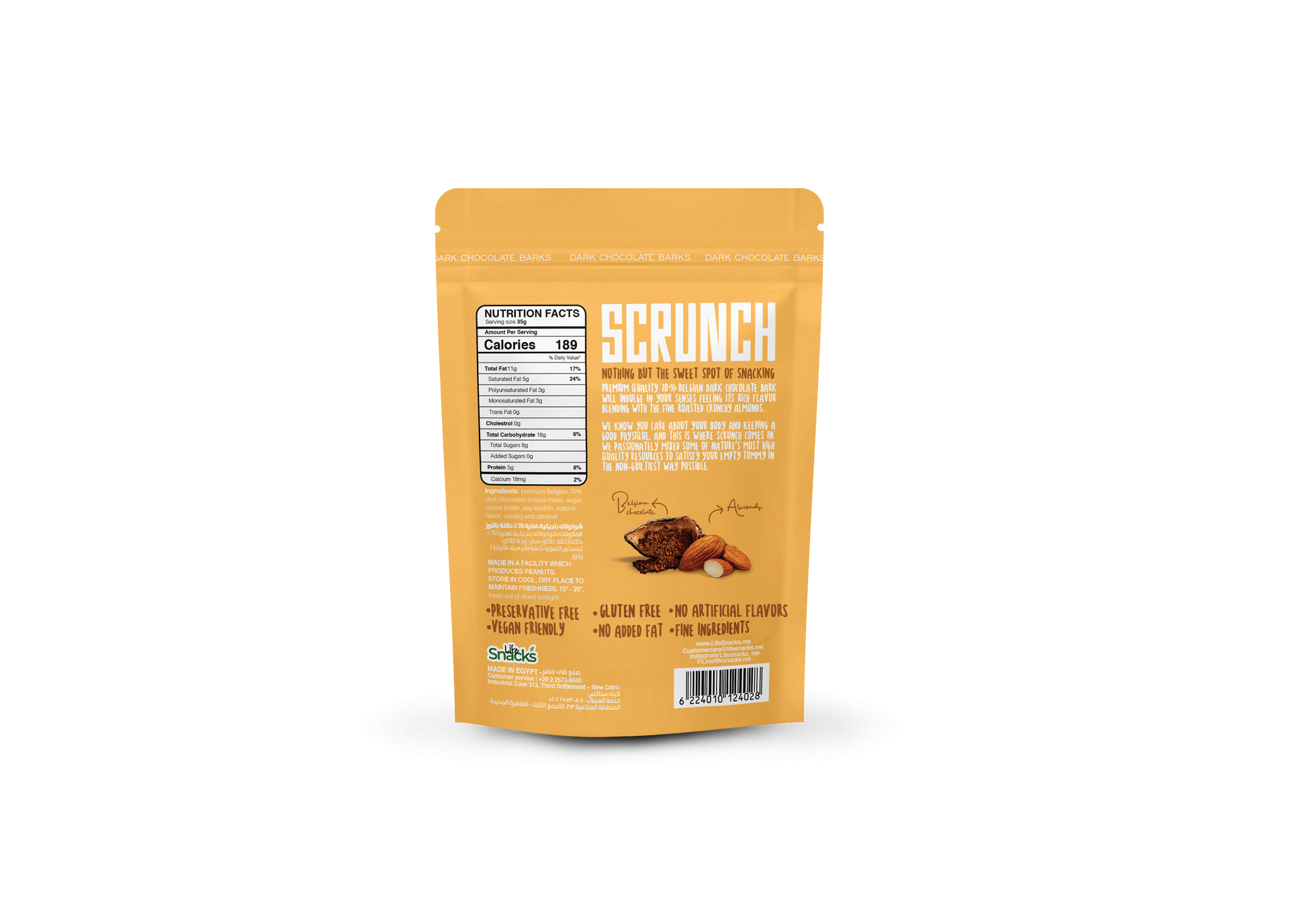 Belgian 70% dark chocolate barks with crunchy roasted almonds .